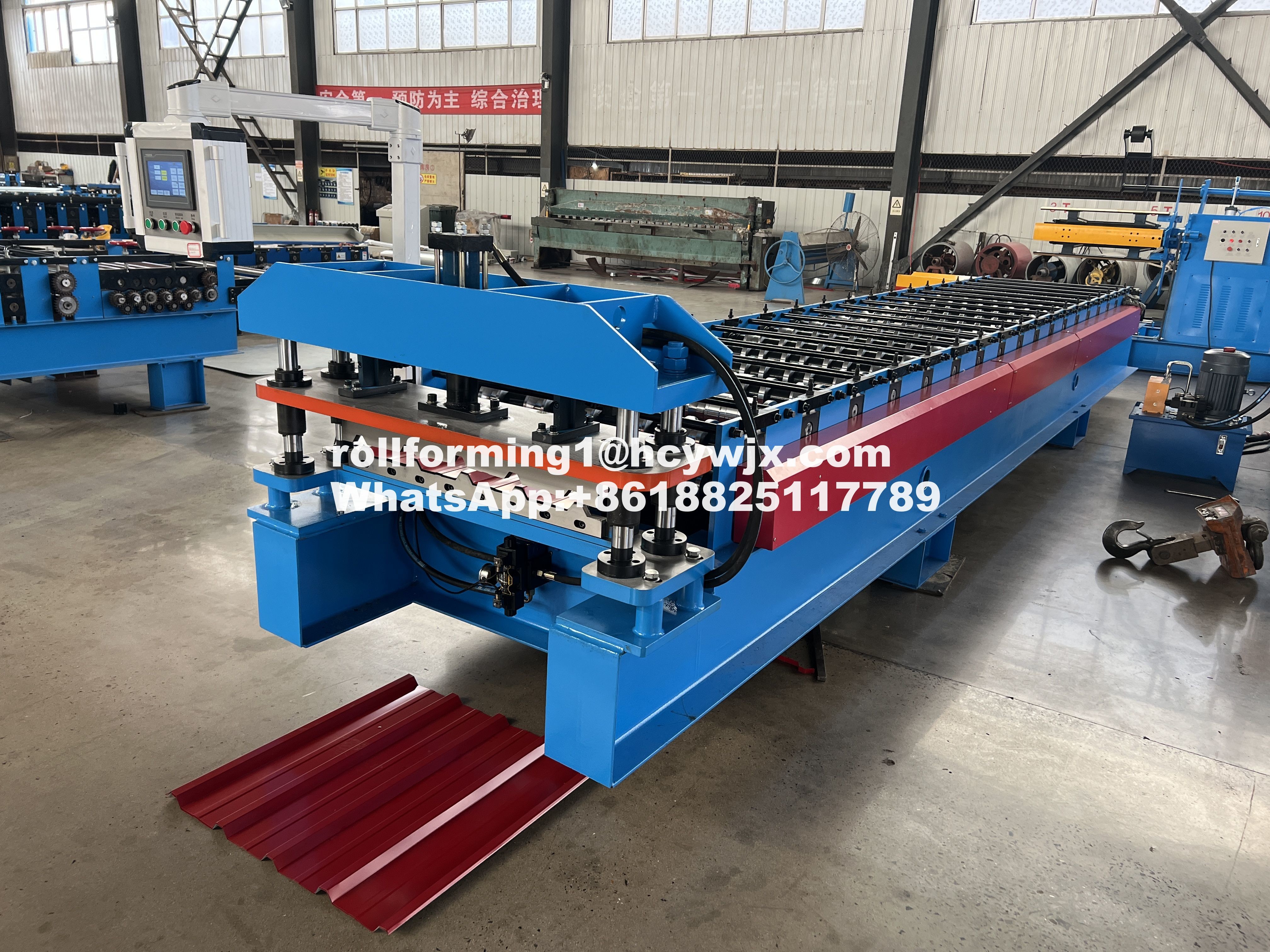 সরঞ্জাম উপাদানঃ কৃত্রিম uncoiler-রোল গঠনের মেশিন-কম্পিউটার নিয়ন্ত্রণ সিস্টেম-হাইড্রোলিক নিয়ন্ত্রণ সিস্টেম-কাটিং