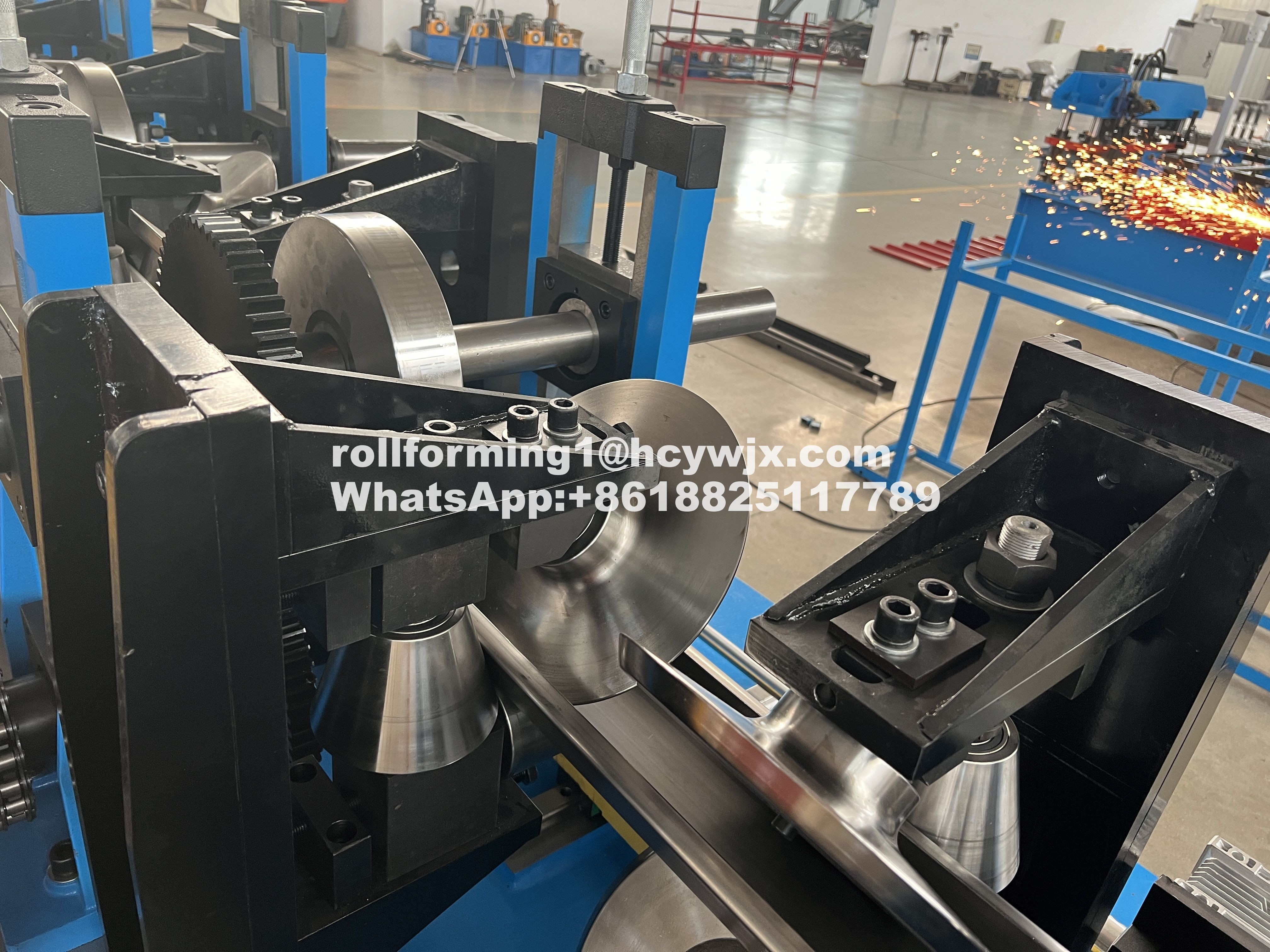 রোল গঠন মেশিনে সঠিক অবস্থানে আসা এবং পাস রোল গাইড। ফিডিং প্ল্যাটফর্ম, মসৃণ এবং সুনির্দিষ্ট উপাদান ফিড নিশ্চিত করুন। ইস্পাত প্লেট প্ল্যাটফর্ম, দুটি পিচিং রোলার, অবস্থান স্টপিং ব্লক। রোলটি সঠিক অবস্থানে পরিচালিত হয় এবং রোল গঠনের জন্য পাস করা হয়। |